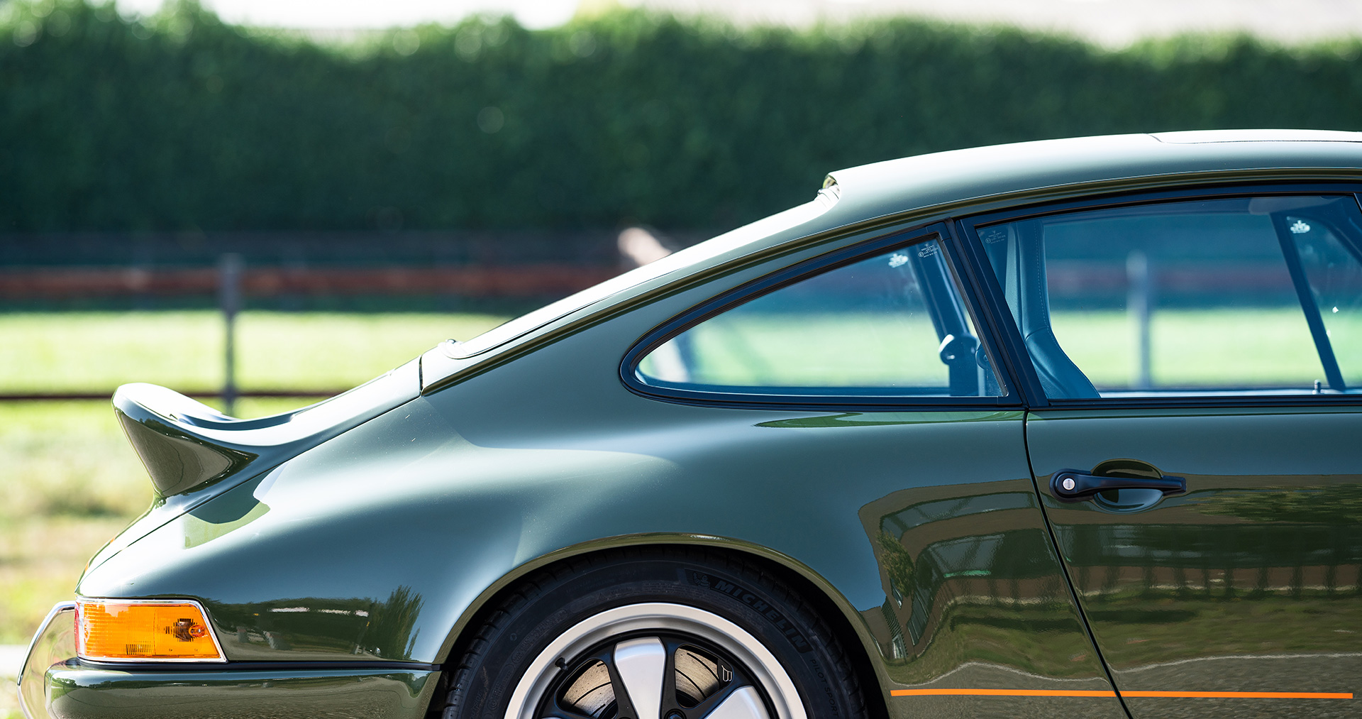 Het herkenbare lijnenspel van de 911 blijft onaangetast. De carrosserie is volledig teruggebracht naar fabrieksspecificaties en in zijn geheel behandeld tegen corrosie. Af te werken in een lakkleur naar wens. De uit koolstofvezel vervaardigde Ducktail geeft de machine de atletische looks die passen bij zijn explosieve prestaties.